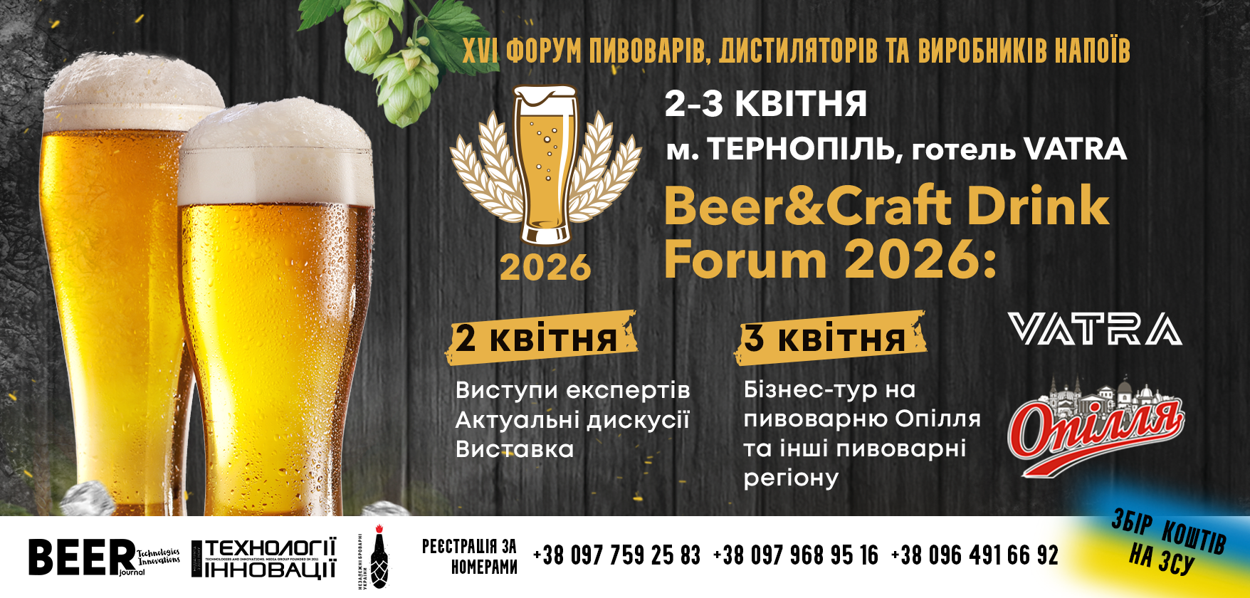 Медіагрупа «Технології та Інновації» запрошує пивоварів, дистиляторів, виробників крафтових напоїв та сидру, представників HoReCa, дистриб’юторів і постачальників технологічних рішень долучитися до Beer&Craft Drinks Forum 2026: Пиво. Напої. Технології, який відбудеться 2–3 квітня в Тернополі. Професійна зустріч стане майданчиком для обговорення актуальних тенденцій ринку, обміну досвідом, презентації нових технологій, демонстрації практичних кейсів та знайомства з сучасними виробничими процесами під час бізнес-туру на пивзаводі «Опілля». Учасників очікують дискусійні панелі про стійкість, якість і нові ринки, Народна дегустація пива та дистилятів, а також живе спілкування з експертами, технологами та інженерами, що дозволить здобути практичні знання для розвитку бізнесу у 2026 році.