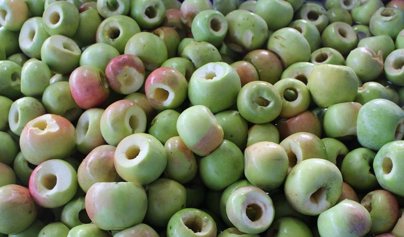Технологічна лінія представлена сучасним обладнанням, яке включає машини для миття, калібрування, очищення, видалення стебел і листя, вибивання кісточок та різання продуктів у різні форми — кубики, соломку, шайби.
